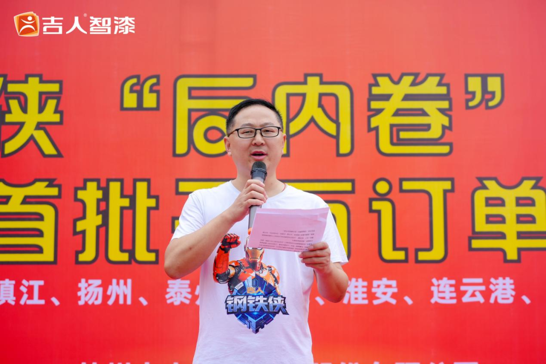 这次千万元订单首发庆典对吉东谈主智漆而言真理真理深刻,意味着全面奏响了行业反内卷的军号。吉东谈主高新营销总监杨林详解“吉东谈主钢铁侠”的反内卷举措,此前在上海海外涂料展的“反内卷” 活动与“中国工业涂料钢铁宣言”获行业高度招供。这次,“吉东谈主钢铁侠”凭借“平价轻奢”特色、1000万元“吉东谈主天相公益基金”、流量赋能帮扶及恒久品牌商议协作,多管皆下,为客户破卷新生提供坚实支捏。