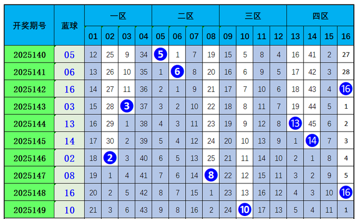 最近10期蓝球号码离别开出05、06、16、03、13、14、02、08、16、10,大小比为5:5,本期预测开出极少蓝球号码:07。